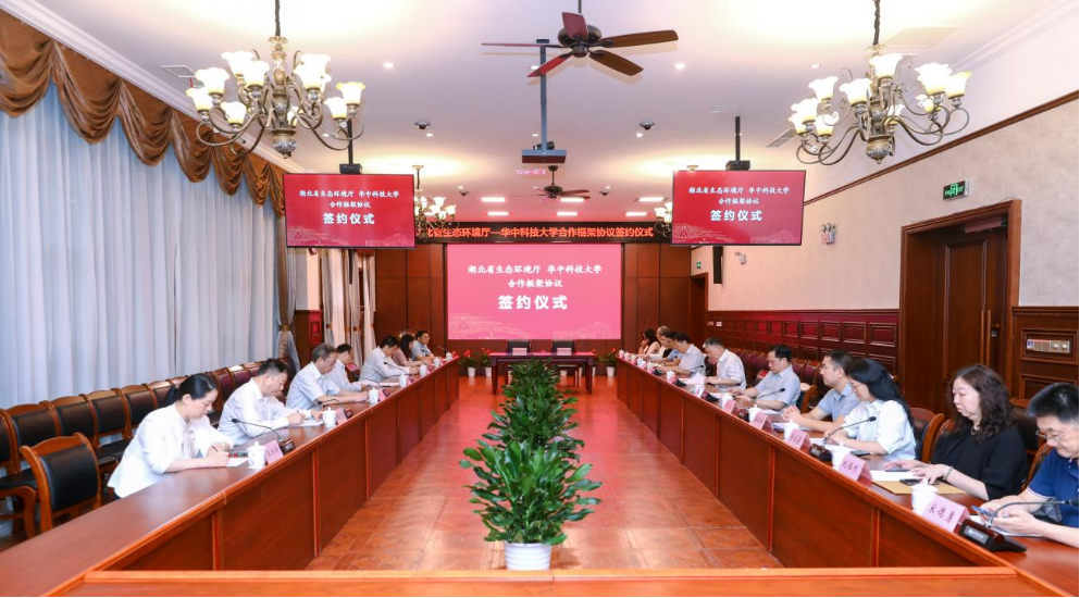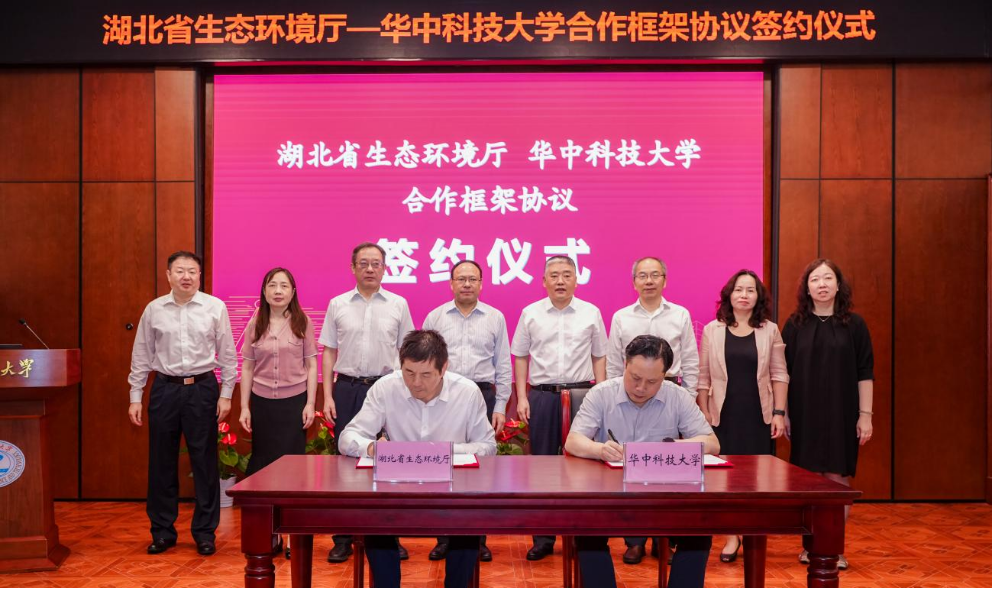 (通讯员:沈涛)6月27日,我校与湖北省生态环境厅合作框架协议签约仪式在梧桐语问学中心明义楼问道厅举行。湖北省生态环境厅党组成员、副厅长郭新明,党组成员、副厅长周水华,我校校务委员会副主任梁茜,党委办公室、校长办公室主任高顺文参加活动。校人文社会科学处处长李志强主持仪式。