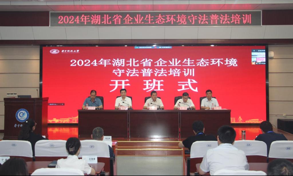湖北省生态环境厅二级巡视员王虚谷,省工商联副主席彭斌,法律部部长傅江,威廉官网中国校友工作及对外联络办公室主任、教育发展基金管理处处长、williamhill中文党委书记戴则健等参加开班式,省生态环境流域治理综合行政执法局三级调研员余其勇主持开班式。