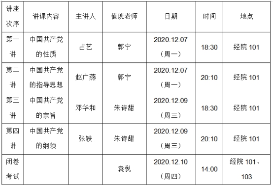 所有参加分党校学习的学员必须提前15分钟到达课堂、不早退、不旷课。