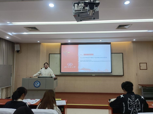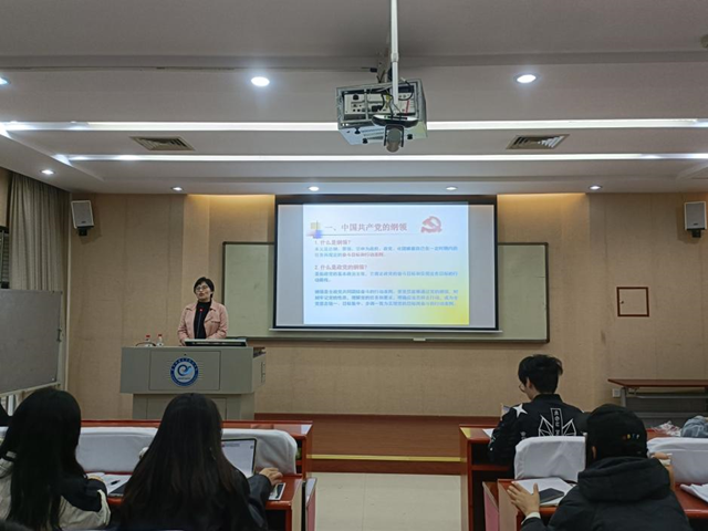 第三讲以“学习领会习近平总书记关于党章的重要论述”为主题,第四讲以“中国共产党的宗旨和纲领”为主题。首先,曹金梅老师从党章的重要地位切入,指出党章是党的总章程,是党的行为规范,更是统一全党思想的根本准则。习近平总书记指出,党章就是党的根本大法,是全党必须遵循的总规矩。之后,曹金梅老师介绍党章的发展建设史。在第四讲,曹金梅老师介绍中国共产党的纲领理论起源,马克思主义为党的纲鲤提供了理论支撑,中国共产党的纲领与时俱进,随国情与时代的发展逐步完善,体现了党的先进性。中国共产党的宗旨是全心全意为人民服务,党的性质和宗旨决定了党除了忠实代表工人阶级和人民群众的根本利益以外,没有其他任何特殊利益,党的宗旨是中华民族仁德思想的重要体现。