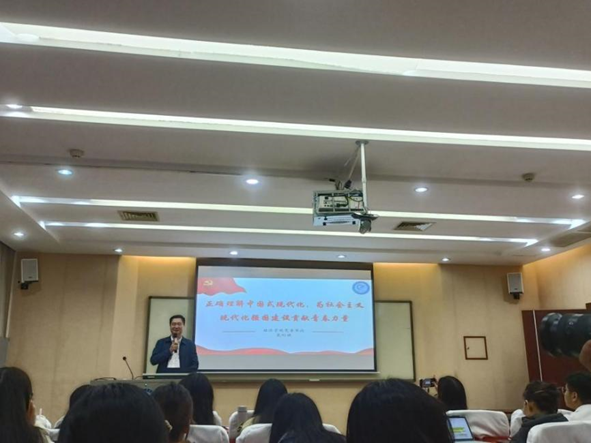 第一讲以“正确理解中国式现代化,为社会主义,现代化强国建设贡献青春力量”为主题。首先,戴则健老师向学员介绍中国式现代化的内涵,深刻诠释了中国式现代化的内涵,中国式现代化是人口规模巨大的现代化,是全体人民共同富裕的现代化,是物质文明和精神文明相协调的现代化,是人与自然和谐共生的现代化,更是走和平发展道路的现代化;之后,他从经济视角剖析中国式现代化,契合学员专业知识,引领学员主动将知识应用入实践,应变求变,助力社会主义现代化强国建设。