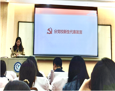 然后,分党校新生代表李梦煊同学就个人经历及思想认识进行发言。她表示作为一名入党发展对象,我们应发扬党的优良传统,向党组织靠拢,认真扎实地学习体会党的方针政策,不断提高自己的思想水平,改造自己的主观世界,同时积极投身实践,改造客观世界,争取早日站到党旗下,成为一名光荣的共产党员。