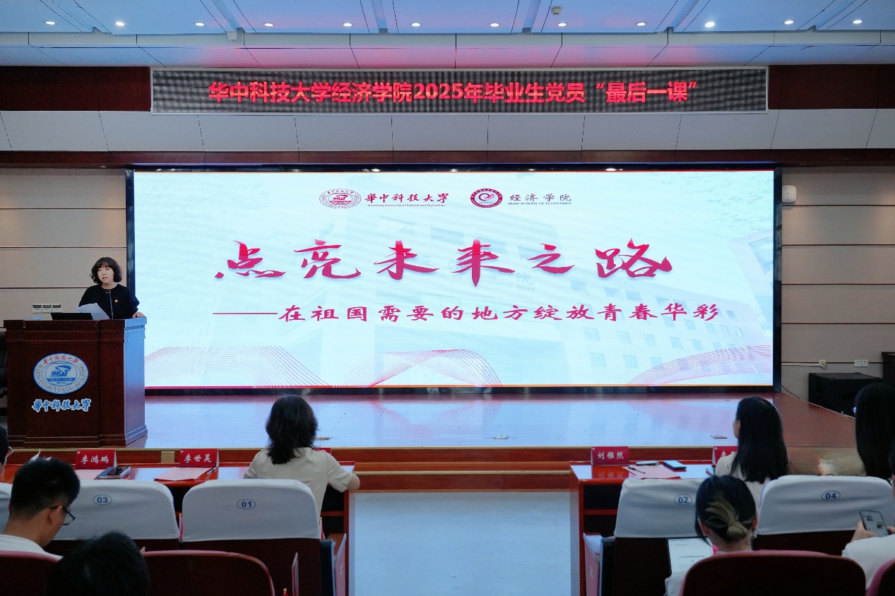 刘雅然以《点亮未来之路——在祖国需要的地方绽放青春光彩》为主题,给全体毕业生党员讲授最后一课。她代表学院党委向圆满完成学业的毕业生党员致以热烈祝贺,并深情回顾了毕业生党员在校期间的成长历程。刘雅然对毕业生党员提出三点期望:一是筑牢信仰根基,坚定理想信念,把“想做成”的理想淬炼成“能做成”的担当;二是传承精神血脉,在学院大师文化的浸润、英雄文化的激励、创新文化的赋能中,绽放经院人的青春风采;三是坚持求真务实,让奋斗的底色更浓、本领的根基更稳;四是投身强国伟业,把小我融入大我,将青春之花绽放在祖国最需要的地方。最后,刘雅然祝愿全体毕业生党员前程似锦,事业辉煌,人生幸福,在民族复兴的壮阔征程中奏响奋斗凯歌。