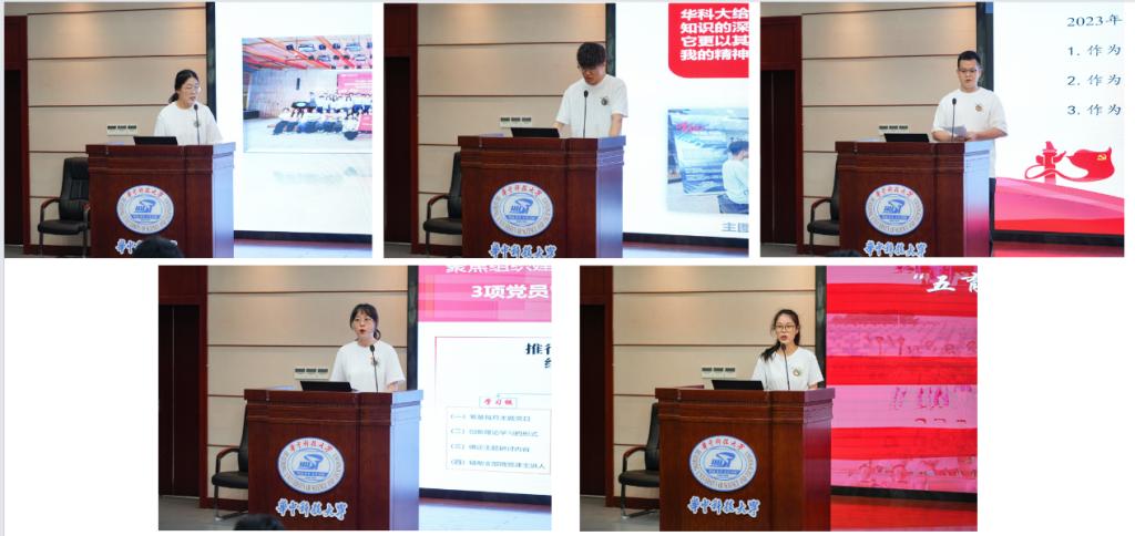 研支团志愿者代表、经济学2101班张涵菲回顾了自己加入研究生支教团的心路历程,表达了自己今后服务国家战略需求的美好愿望。读研深造代表、金融2101班夏尹睿分享在华科大四年的成长历程,号召大家把论文写在祖国大地上。就业工作代表、博士2101班陈梁分享了自己在求学期间发表多篇高水平学术论文的成长思考,表明自己为中国特色社会主义经济贡献力量的决心。毕业党支部代表、2022级硕士生理论经济学党支部保思琦聚焦组织建设强基,鼓励同学们奋力书写挺膺担当的青春篇章。毕业班级代表、经济学(创新实验班)2101班尹轩分享“胡吉伟班”从争创到传承的成长故事,希望这份英雄文化会在传承中更焕发的光芒。