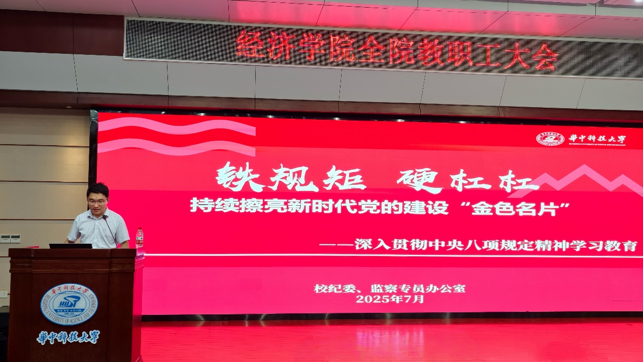会议伊始,学校第三纪检监察室副主任唐明毅进行专题纪律宣讲。他以《铁规矩 硬杠杠 持续擦亮新时代党的建设“金色名片”——深入贯彻中央八项规定精神学习教育》为主题,围绕中央八项规定出台的重大意义、中央八项规定精神的主要内容以及违反中央八项规定精神典型案例等内容展开宣讲。