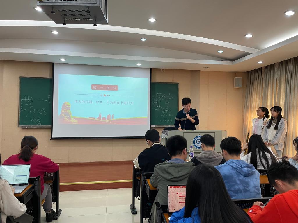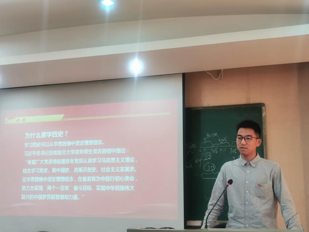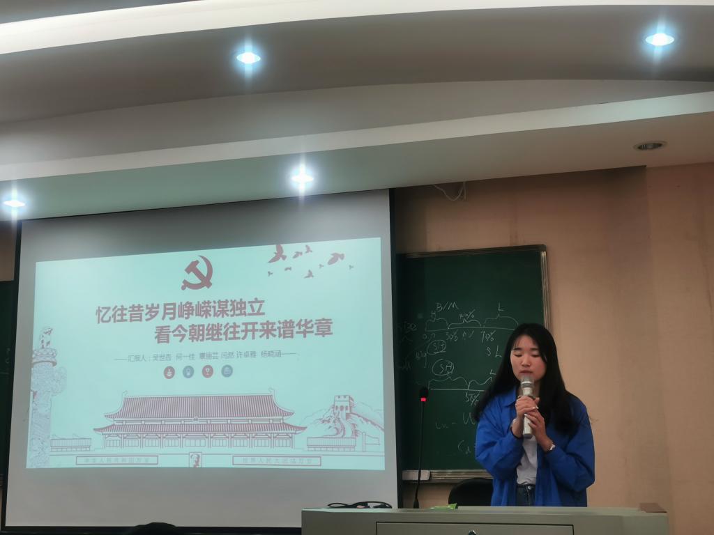 大会开始,首先是本科2019级党支部的预备党员们进行汇报交流,各位预备党员同志就“学四史、学党史、建党百年”的主题进行了分享。其中,张正阳同志为大家带来了开篇汇报,以“学党史,悟思想,办实事,开新篇”为主题向大家介绍并强调了学习党史以及将落实理论与实际相结合的重要意义。其后,以麦迪妮阿依同志、王倩倩同志、王晓允同志、曾海沛同志、赵婕同志为代表的五个小组分别以“中共一大的历史”、“建党百年”、“为什么要学习党史”、“中国共产党的建党精神”、“中国的大国外交”为题目为在座的预备党员和入党积极分子进行了分享,同志们分享的革命历史和英雄故事令人动容,在屏幕上分享的视频令人更觉振奋,在一系列的分享之后,各位预备党员和入党积极分子都觉得收益颇丰。