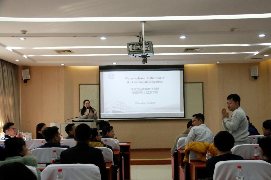 (通讯员:马文丽 林伊慧)12 月 16 日下午三点,来自Prek Leap New Generation等柬埔寨四所知名高级中学师生代表团我院进行参观交流,学院副院长孔东民、国际教育学院招生与对外合作办公室副主任艾霄、我院三名柬埔寨籍优秀生以及三十余名代表团成员参加本次活动。本次活动由国际学生辅导员马文丽主持。