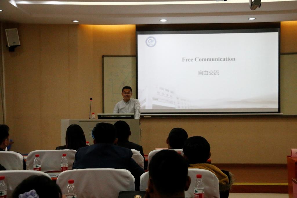 为了让成员们更真切地了解到来华留华的基本情况,学院邀请了三名柬埔寨籍的在籍优秀国际学生来发言分享自己的经验。2024 级国际贸易学硕士生陈健华、2022 级国际贸易学硕士生李生、2021 级国际贸易学博士生陈肯分别从选择来华留学的初心、奖学金申请经验、在校学习心得体会等方面展开交流,现场氛围热烈。
