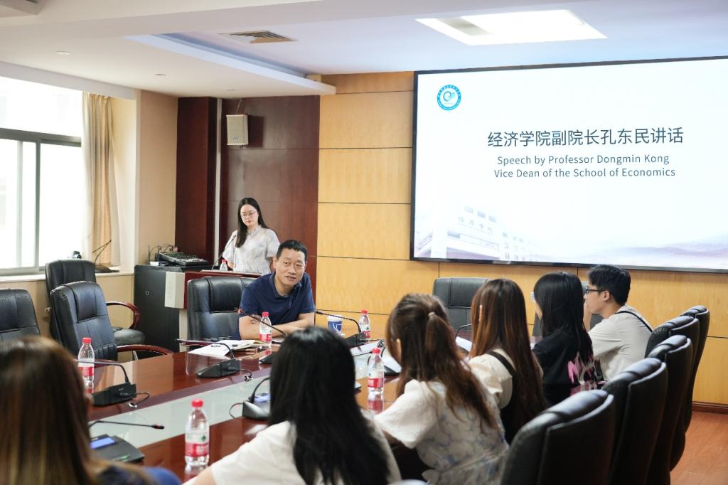副院长孔东民代表学院对远道而来加入williamhill中文大家庭的国际新生们表示热烈欢迎,他介绍了学院“明德厚学、经世济民”的院训精神,认为经济学不仅关注市场运作的规律,更致力于探索如何通过合理的经济政策促进世界范围内的社会公平与繁荣。他还鼓励学生们充分利用学院提供的各种资源和机会,积极参与各位学术研讨和文化交流活动,增强跨文化交流的能力,在彼此尊重中共同发展、在求同存异中合作共赢,为推动构建稳定国际秩序、全球经济可持续发展贡献华科大力量。