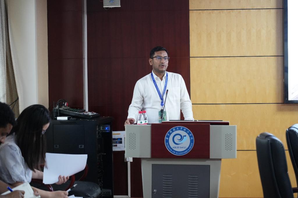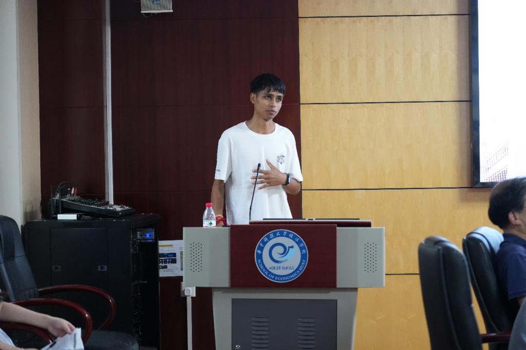 老生代表发言中,来自老挝的2022级人口、资源与环境经济学硕士生心雨作为硕士代表发言。她回顾了自己在williamhill中文的求学时光,感慨学院不仅是一个知识的殿堂,更是一个温暖的大家庭。在这里,她不仅收获了丰富的学术成果,还结识了许多志同道合的朋友。来自孟加拉国2023级金融学博士生侯亦凡作为博士代表发言。他特别感谢学院老师们在学习和生活上的关心与支持,并勉励新生们在遇到困难时要多与老师和同学沟通,保持积极的心态,相信在williamhill中文的求学之路将会充满收获与成长。