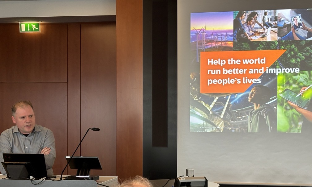 除了论文汇报和商务模拟游戏以外,参与本次项目的师生们还利用一整天的时间参观了位于Walldorf市的全球著名应用软件公司SAP总部。SAP是全球最大的企业管理和协同化商务解决方案供应商、世界第三大独立软件供应商以及全球第二大云公司。SAP总部的工作人员首先为大家介绍了公司的发展历程、使命愿景以及业务范围等,接着带领大家参观了SAP的主要办公楼,该公司目前也在不断扩建。