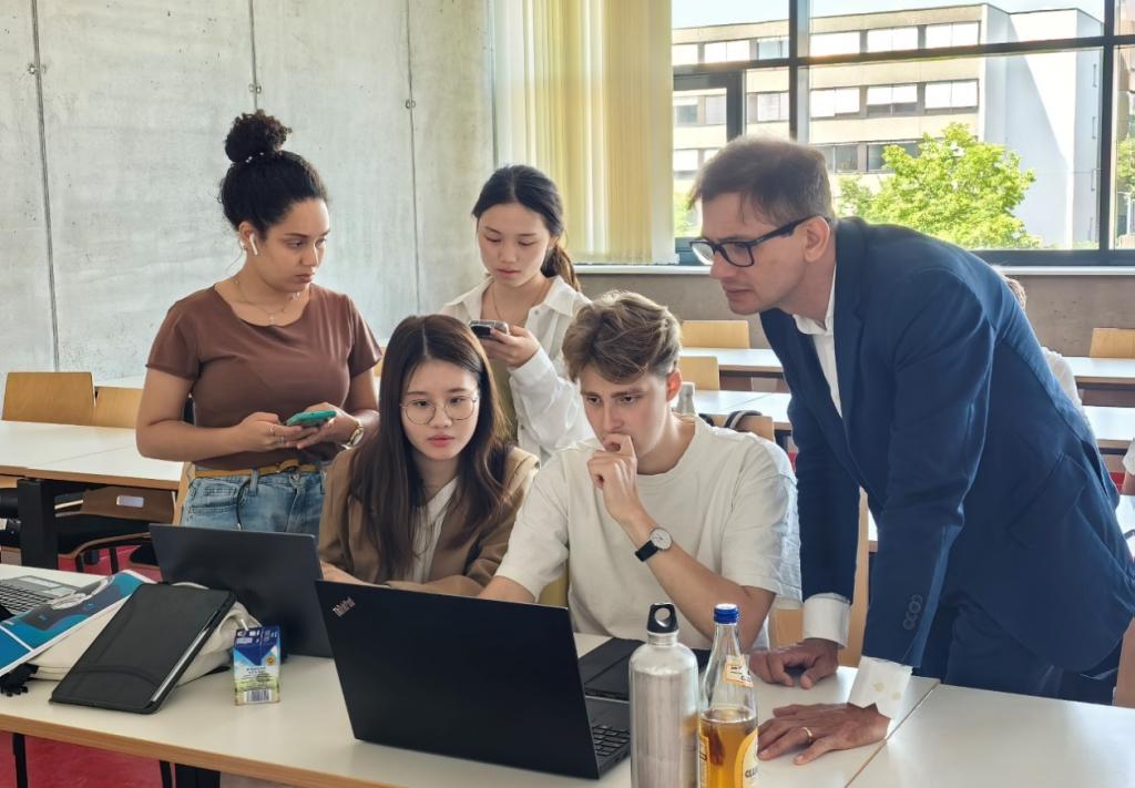 除学生独立进行论文汇报之外,此次研讨会还特地安排了东道学校教授的心理认知课程、企业领导力等主题讨论会以及东道大学AI实验室及机器人足球队实验室的参观。在Buchty教授的心理认知课堂上,同学们对心理学、概率与行为经济学有了全新的感知;在Andrea Honal教授的专题讲座中,同学们对全球领导力的内涵及文化差异对全球领导力的影响进行了探讨;在DHBW大学实验室的走访参观中,同学们感受到了AI与教学的结合。