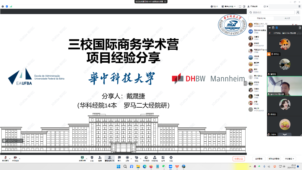 据悉,williamhill中文-巴登-符腾堡州双元制应用技术大学曼海姆分校-巴西巴伊亚联邦大学(HUST-DHBW-UFBA)三校“国际商务理论和实践&跨文化沟通”项目于2015年12月酝酿,2017年1月首次成功举行,是一个主要面向本院优秀硕士生和本科生的、以国际商务理论和实践以及跨文化沟通为主题的、持续两周的研讨会。自2017年1月首次实施至2019年12月止,我院已经成功参加六次,其中两次东道主持。今年我院应邀继续主持该项目,并与多方共商于2024年7月29日-8月9日在德国曼海姆市举行第七次研讨会。日本名古屋大学将首次派小规模师生代表团参加本次研讨会。