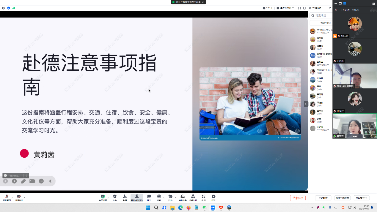 7月22日下午,邱慧芳、郑冯忆老师和即将赴德国的8位同学在线上召开了终稿审查和行前会议。此次会议还特别邀请了范红忠、周记顺老师对同学的终稿做指导建议,嘉宾黄莉茜学姐和戴晟捷师兄为同学们分享赴德经验和注意事项。