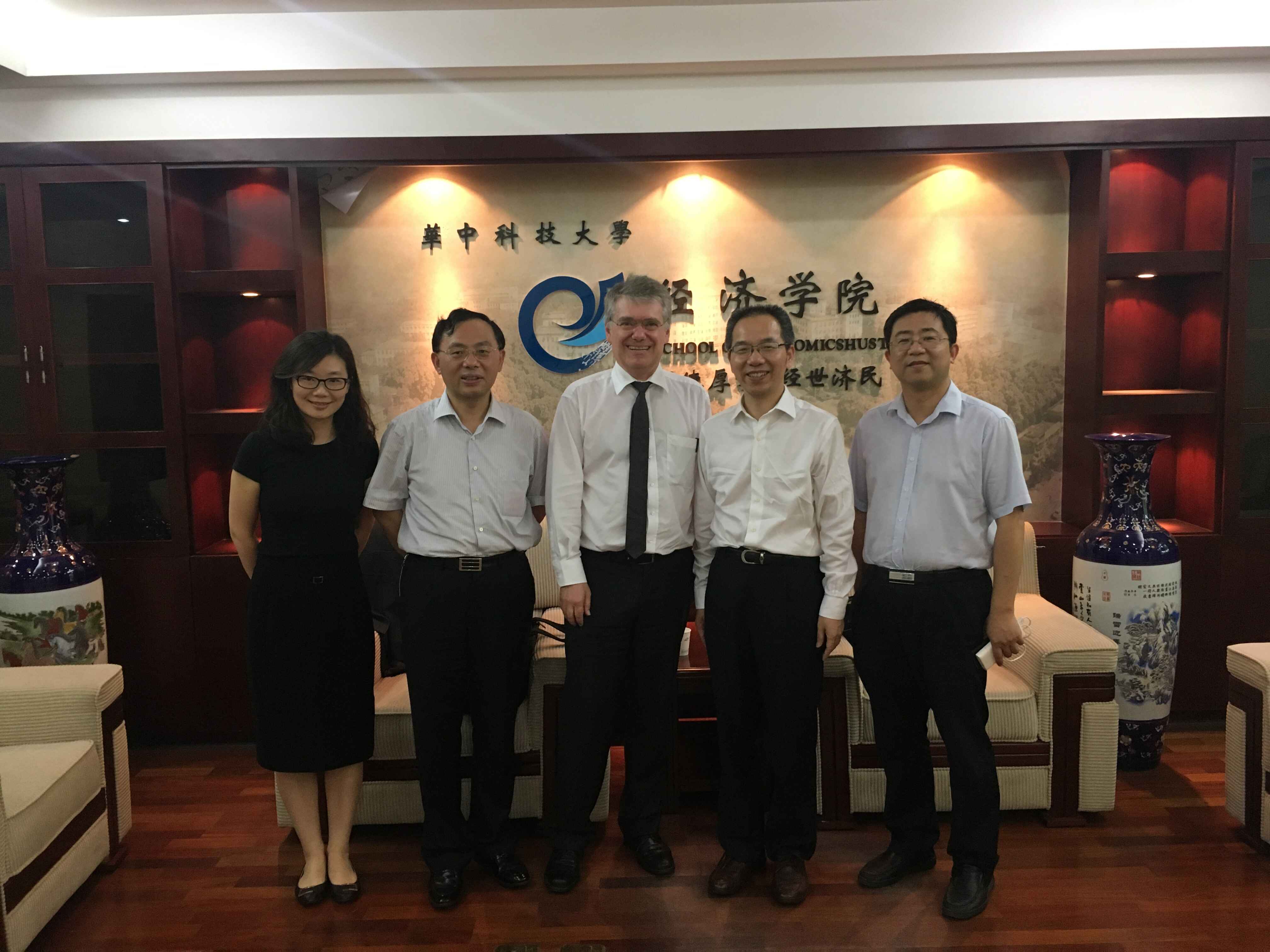 双方还就人才培养、合作研究等方面进行了会谈。院长张建华教授、副院长欧阳红兵教授、徐长生教授、王班班讲师、舒扬讲师出席了座谈会。双方就建立长期合作关系达成了共识。Markus Taube教授此行是随杜伊斯堡∙埃森大学代表团访问我校并参加“威廉官网中国-杜伊斯堡∙埃森大学日”活动,两校将在医学、物理、化学、经济、人文等领域建立长期深入合作关系。