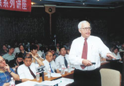 国际著名经济学家拉丰( J. Laffont )在我院“现代经济学—金融学前沿发展系列讲座”上讲课。