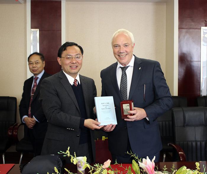 会见结束后,徐长生院长向基督城市长帕克先生赠送了张培刚《农业与工业化》英文全集等礼品。