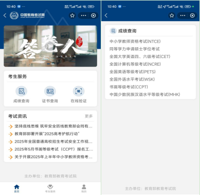 使用微信APP点击下方文字或搜索“中国教育考试网”小程序。